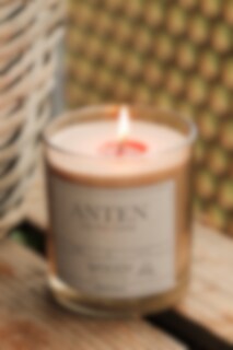 Scented candle Anten "Woody" is a stylish scented candle in beige glass that spreads a sophisticated scent mix of floral tones, smokiness and agarwood. A sophisticated combination that creates a calm and inviting atmosphere in the home.