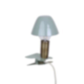 Small table lamp with clip. Attach it to a table, shelf edge or window sill. Lamp screen and clip in white lacquered sheet metal, base in brushed brass. Off-white textile cord with switch and europlug. Fits E14, max 40 W. Light bulb not included.