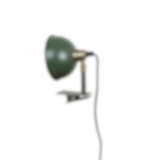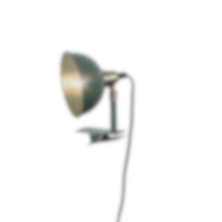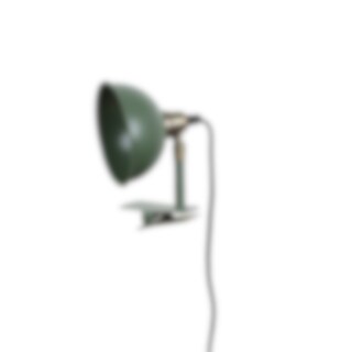 Table lamp with a cupped shade and clamp in green. Details in brushed brass. Attach it to a table, shelf edge or window sill. Black textile cord with switch and plug. Cord length 150 cm. Fits with lamp E14, max 40W. Light bulb not included.