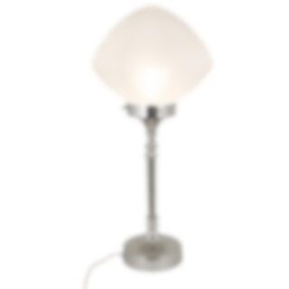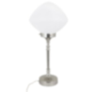 Elegant table lamp in nickel finish with frosted glass. The round shape of the shade diffuses a soft and pleasant light, which together with the lamp base creates a timeless look reminiscent of the turn of the century. The lamp's design is a perfect example of how simplicity and elegance blend together, where beautiful glass and solid metal unite in a harmonious combination.