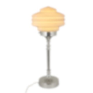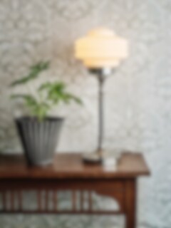 Elegant table lamp in nickel finish with a beautiful opal glass in a warm beige shade. The round shape of the shade diffuses a soft and pleasant light, which together with the lamp base creates a timeless look reminiscent of the turn of the century. The lamp's design is a perfect example of how simplicity and elegance blend together, where beautiful glass and solid metal unite in a harmonious combination.