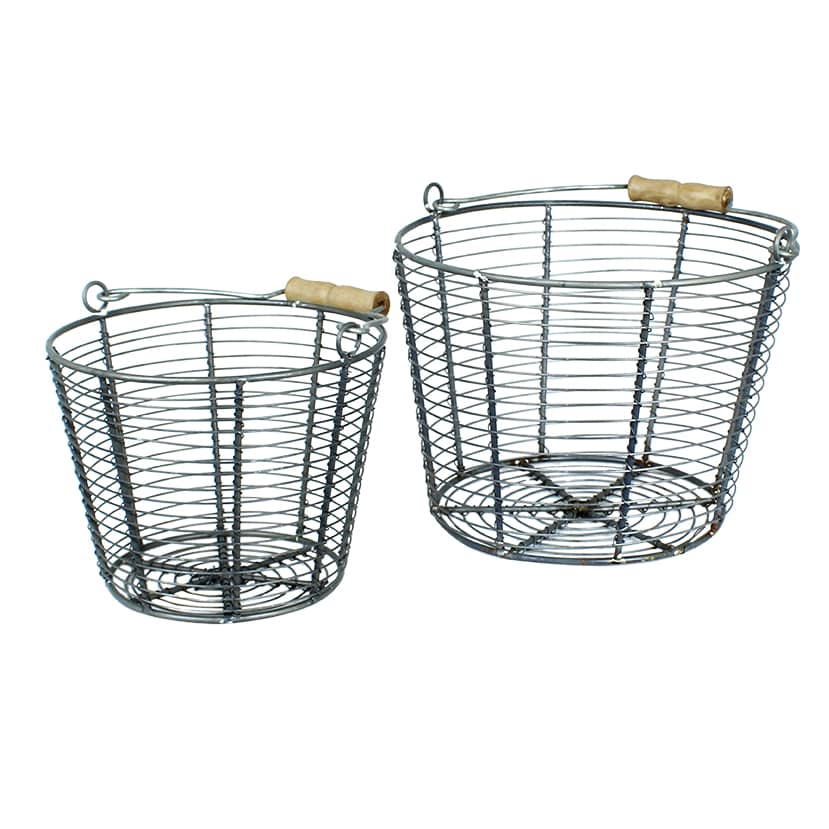 Wire basket in zinc with wooden handles.