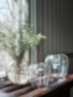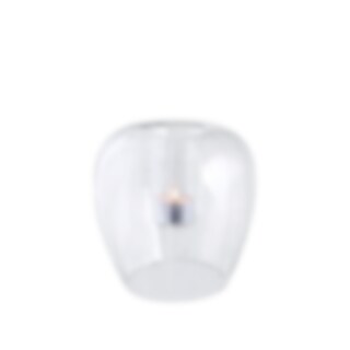 Candle holder in clear glass with etched stripes. A tealight is placed in the immersed cup and spreads an atmospheric, cosy glow. Decorative tealight holder with a simple, stylish design. The candle holder is made of 50-60% recycled glass.