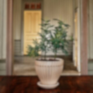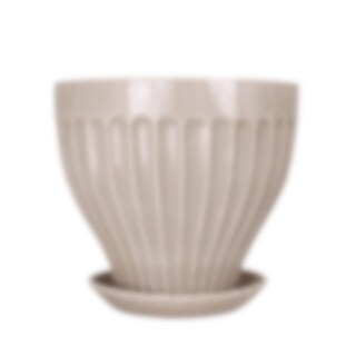 Stoneware pot with a beautiful relief pattern hand-glazed in a beige colour. Natural variations in the glaze gives life to the pots. The pot has a hole in the bottom which makes it possible to plant directly in the pot and a saucer that collects leftover water.