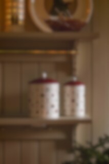 Tin with a nostalgic Christmas motif. Available in two sizes. Use the can for gingerbread, cookies, Christmas candy or other goodies. Lid in red with a round knob. Silicone ring that ensures the lid sits firmly and closes tightly.