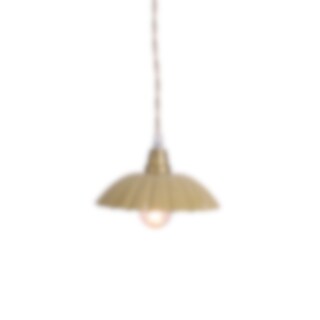 Smaller, yellow pendant lamp with a decorative lamp shade. Beige twinned textile cord, length approx 150 cm. No switch on the cord or lamp plug, choose if you want to connect a plug for wall or ceiling. Fits E14, max 25W Light bulb not included.
