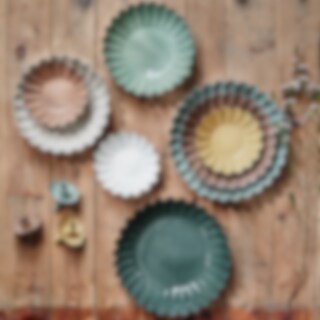 Decorative beige bowl in sheet metal. The bowl is handmade in India and its wavy edges are hand cut. Small variations in color and shape may occur.
