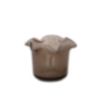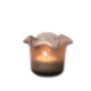 Small beautiful candle holder for tealights with wavy edges, made from 50-60% recycled glass. With a soft brown color and natural variations, this candle holder creates a cozy atmosphere in any room. Available in multiple colors. Not dishwasher safe.