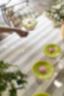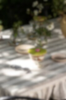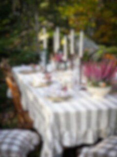 Tablecloth Made from 100% organic cotton with a classic wide-striped pattern and a beautiful frill. Very nice to match with other products in the same series.