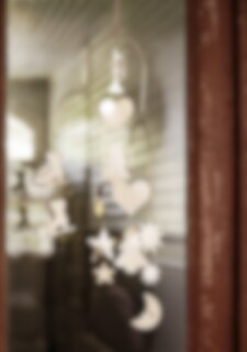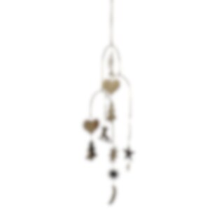 Mobile in genuine brass with classic Christmas motifs in the form of fir trees, hearts, stars, skates etc. Hang up and let the ornaments reflect the light around.