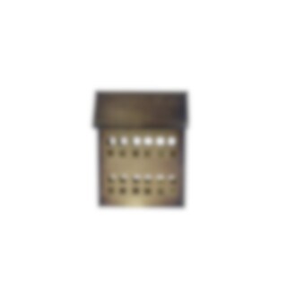 A beautiful interior detail to decorate with during the dark hours of the day. Use as a tea light holder and let the lantern spread a cozy glow through all the windows on the house. Opening at the back. Made of sheet metal with antique brass finish.