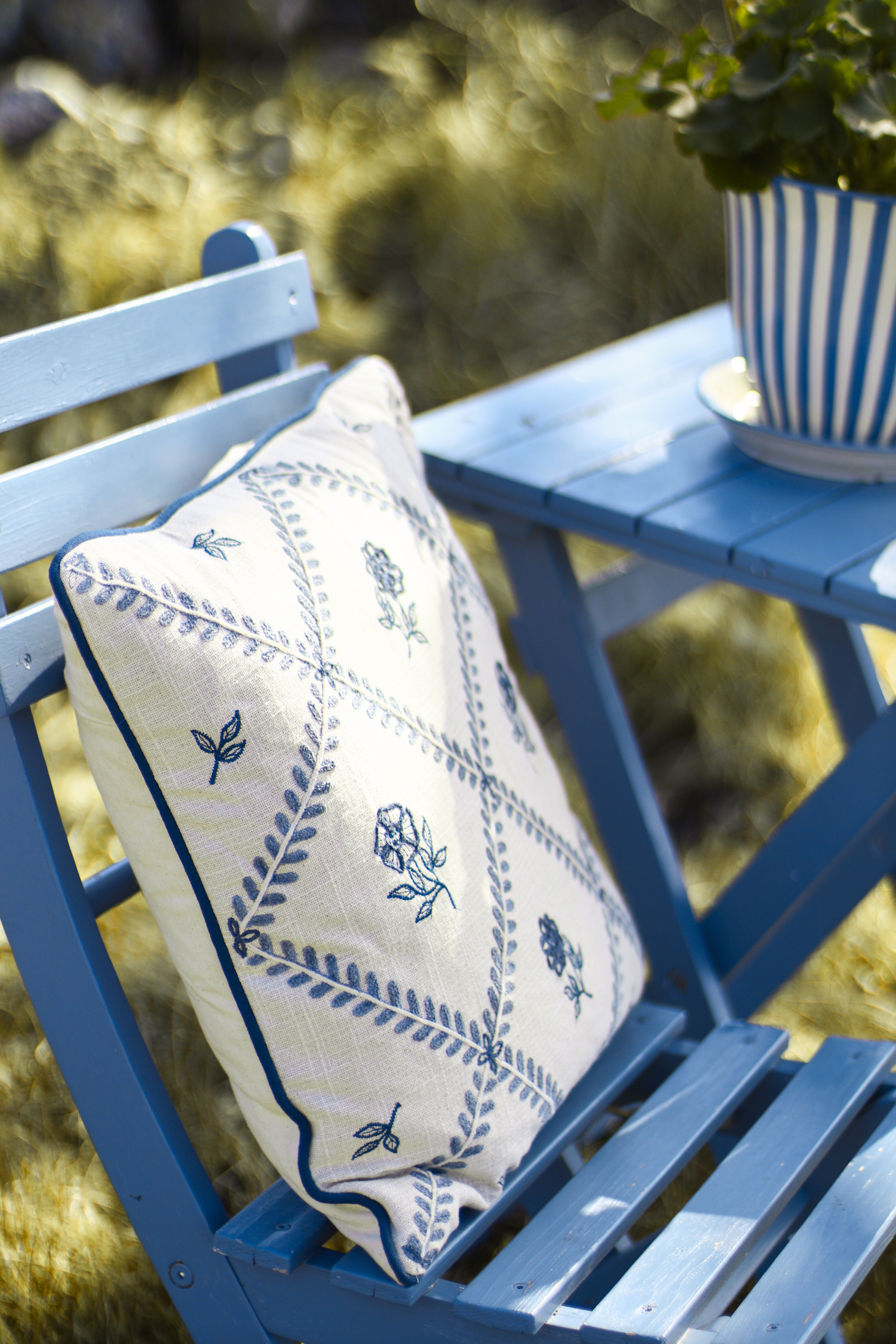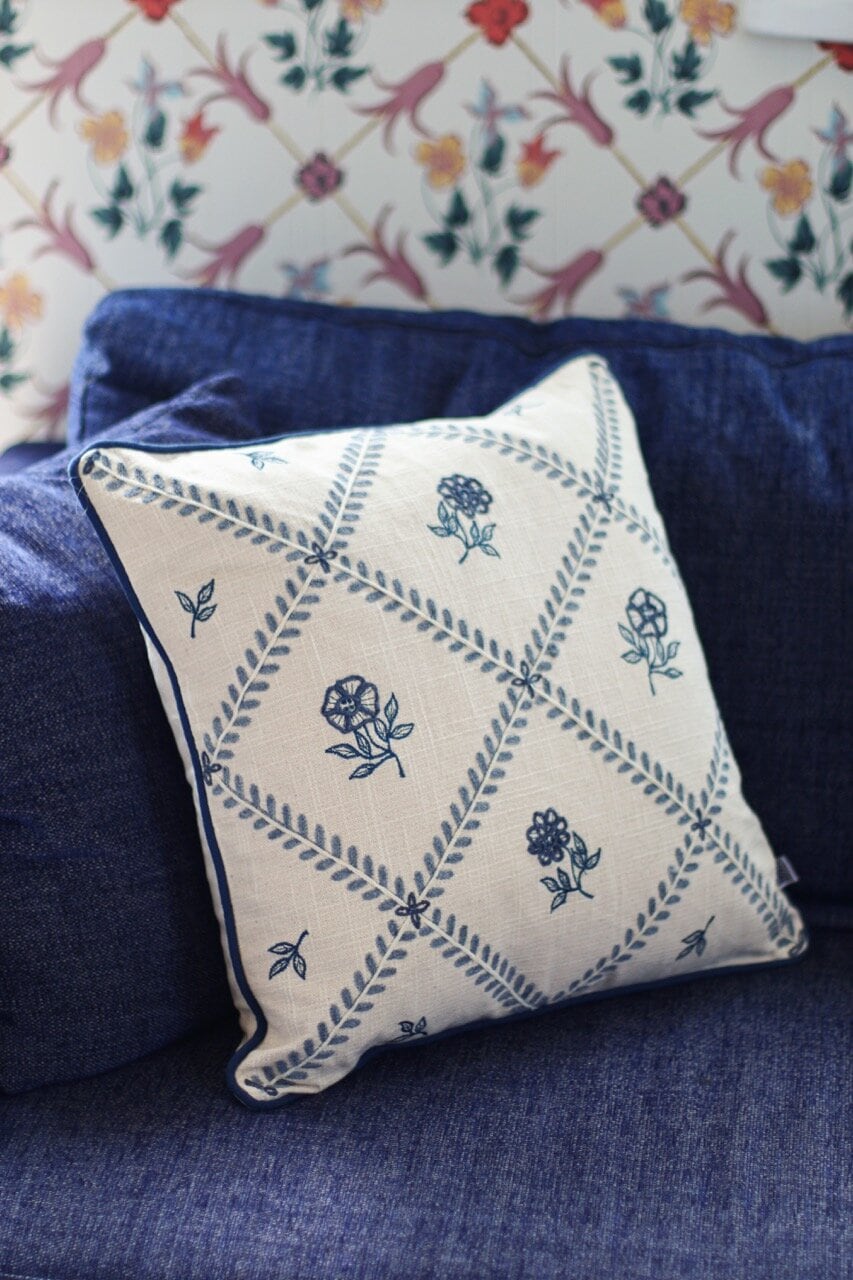 Cushion Cover Lovisa Embroidered Blue/White