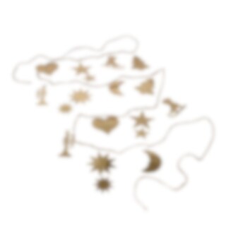 Garland with ornaments in genuine brass with classic Christmas motifs in the form of fir trees, hearts, stars, skates etc. Hang it in a wondow, in the Christmas tree or on the wall and let the ornaments reflect the light around. The garland is available in two lengths.