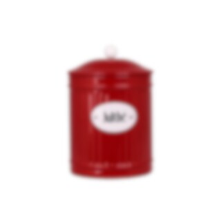 Round tin in red with a sign in white with the text Julthé. From the tin series Hugo.
