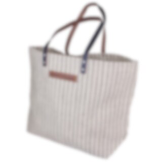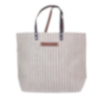 Jute bag with leather shoulder straps that is both stylish and practical. The bag is equipped with a snap button for closure and an inner pocket with a zipper. Jute fiber, being a natural material and a fast-growing plant, requires no fertilizers, pesticides, or large amounts of water. Jute is often used to create sustainable and eco-friendly products. The material is biodegradable and durable. Part of the Ellen series, complement it with a cooler bag in the same pattern, and you're ready for a day at the beach.