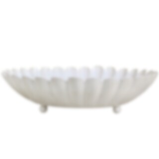 Large white bowl in sheet metal with a decorative edge on three round feets. Perfect for fruit, sweets or nuts. The largest bowl in the Ingrid series. The bowl is handmade in India and its wavy edges are hand cut. Small variations in color and shape may occur.