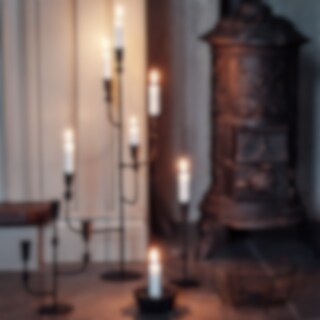 Candle holder in a small bowl for a chandelier candle in black cast iron. Decorative candle holder to be decorated according to season or keep it as it is.