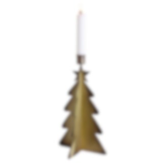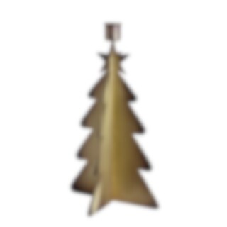 Candle holder in the shape of a Christmas tree. The candlestick is made of sheet metal with an antique brass finish and suits a regular chandelier candle.