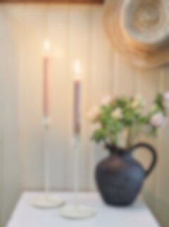 Twisted candle holder for taper candles in a stylish design. Suitable for both rustic and classic homes. Place the candle holder on a side table, a dresser, or in the center of the dining table alongside other candle holders of varying heights to create a delightful atmosphere during evening dinners. Particularly charming with a colored candle in this white candle holder, making it a beautiful centerpiece.
