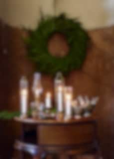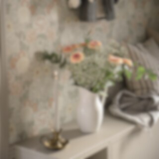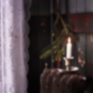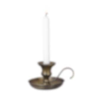 Candle holder in brass-coloured sheet metal for one candle with an elegant handle.