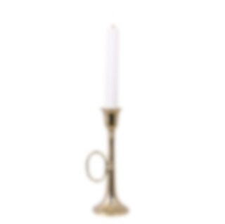 Tall candle holder in solid brass in the shape of a trumpet, for regular chandelier candles. With its unique and beautiful design, the candle holder creates a cozy atmosphere and fits nicely as a decoration and light source in all rooms of the home.
