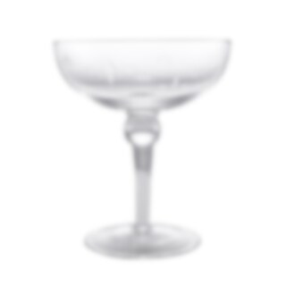 Stylish champagne coupe glass with shallow, broad-bowled saucer. Etched pattern, perfect for champagne, sparkling wine and drinks. Dishwasher-safe.