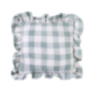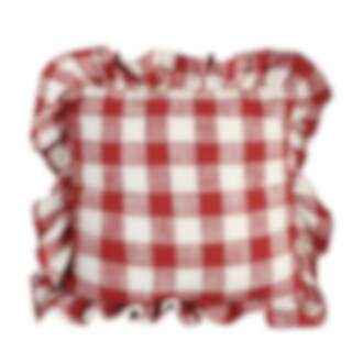 Cushion cover Made from 100% organic cotton with a classic checkered pattern and a beautiful frill. Hidden zipper at the back. Very nice to match with other products in the same series.