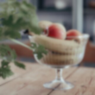 Bowl on foot in clear glass with etched stripes. The bowl is made of 50-60% recycled glass. Not dishwasher safe.
