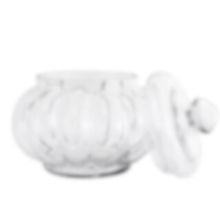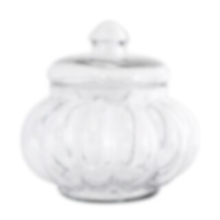 Glass jar with a lid in a sweet round shape. Suitable for, for example, cookies or cotton balls. Beautiful to display in the kitchen or bathroom.