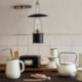 Hanging stand in black lacquered metal with a small lamp shade and brass details. The hanging oil lamp holder fits all kerosene lamps from Strömshaga in the collection Straight Large. Length of chain: 93 cm.