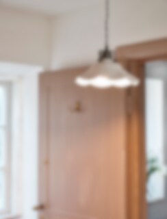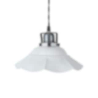 Decorative pendant lamp in sheet metal with a flounce edge. Black textile cord, length approx 150 cm.