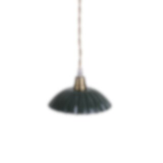 Smaller, dark green pendant lamp with a decorative lamp shade. Beige twinned textile cord, length approx 150 cm. No switch on the cord or lamp plug, choose if you want to connect a plug for wall or ceiling. Fits E14, max 25W Light bulb not included.
