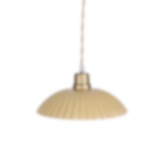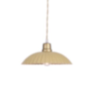 Yellow pendant lamp with a decorative lamp shade. Beige twinned textile cord, length approx 150 cm. No switch on the cord or lamp plug, choose if you want to connect a plug for wall or ceiling. Fits E27, max 25W Light bulb not included.