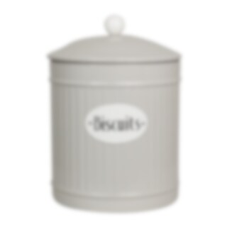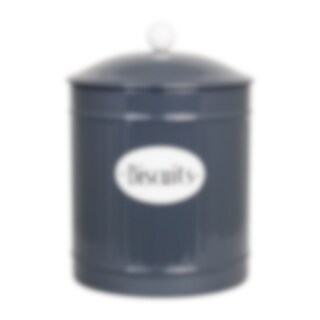 Round tin in blue color with a sign in white with the text Biscuits. From the tin series Hugo from Strömshaga.