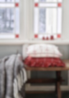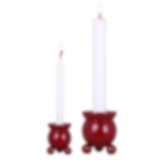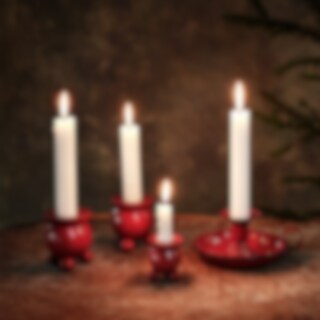 Candle holder made in Sweden out of birch wood. Handpainted red with candleholders in metal.