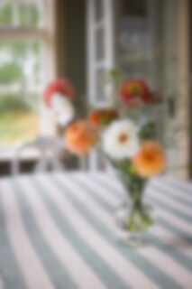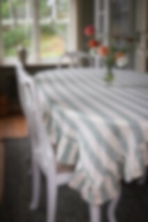 Tablecloth Made from 100% organic cotton with a classic wide-striped pattern and a beautiful frill. Very nice to match with other products in the same series.