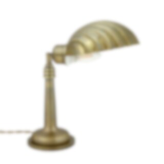Charming table lamp in brass finish with a shell-like shade. Under the decorative shell shade, the light source is hidden like a pearl in a clam. The screen is adjustable in all directions, which means that the light can be directed where you want. Suitable as side lighting or as a practical desk lamp.