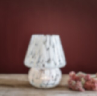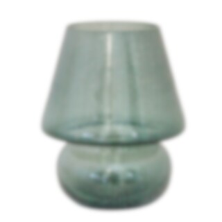 Glass lantern for tea lights, shaped like a mushroom. With a beautiful green color and natural variations, this lantern creates a cozy warmth and an atmospheric glow in any room. Not dishwasher safe.