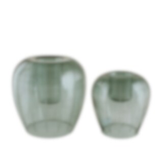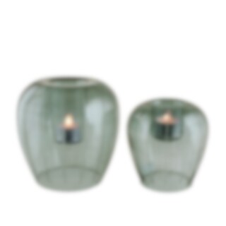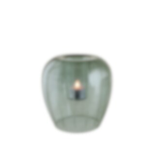 Candle holder in green stained glass with etched stripes. A tealight is placed in the immersed cup and spreads an atmospheric, cosy glow. Decorative tealight holder with a simple, stylish design. The candle holder is made of 50-60% recycled glass.