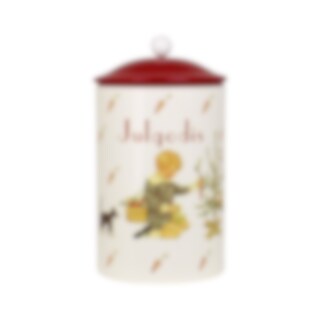 Round Christmas tin with a traditional Swedish Christmas motif and the text Julgodis, for candy. Silicone ring that makes the lid close tightly.