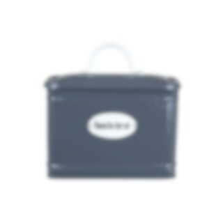 Tin in blue with a lid. A sign in white with the text Knäckebrot for our German speaking customers. From the tin series Hugo from Strömshaga.
