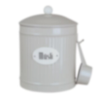 Round tin in beige with a sign in white with the text Müsli. Comes with a scoop that can be hung on the side. From the tin series Hugo from Strömshaga.