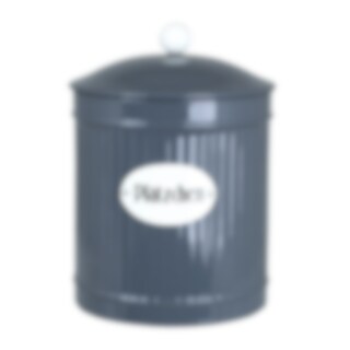 Round tin in blue with a sign in white with the text Plätzchen for our German speaking customers. From the tin series Hugo from Strömshaga.