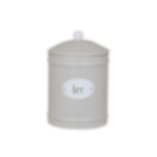 Round tin in beige with a sign in white with the text Tee for our German speaking customers. From the tin series Hugo from Strömshaga.