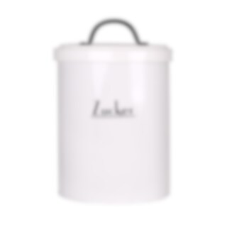 Tin with German text for Zucker (Sugar). Tin in off-white lacquered sheet metal, handle and text in grey. From Strömshaga's popular tin serie Ralf, match with other tins with german text in the same series.