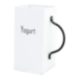 White tin can holder for "Yoghurt" fom our popular tin series Svarte Petter. Size adapted to the most common high 1 liter packages.