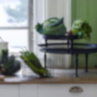 Decorative, round and white lacquered black with legs. The legs are removable and the washers are stackable.