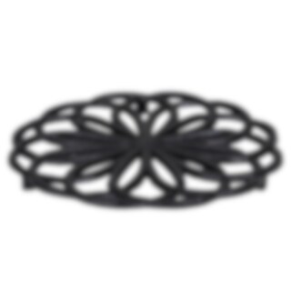 Round rustic pot holder in black cast iron for pots and pans. Nice to hang on the wall as a kitchen decoration when it's not in use.