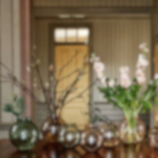 Minimalistic and elegant vase in grey stained glass with etched stripes. The vase is made of 50-60% recycled glass.