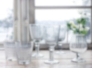 Wine glass with etched stripes as decorative pattern. Dishwasher-safe. The wine glasses are made of 50-60% recycled glass.